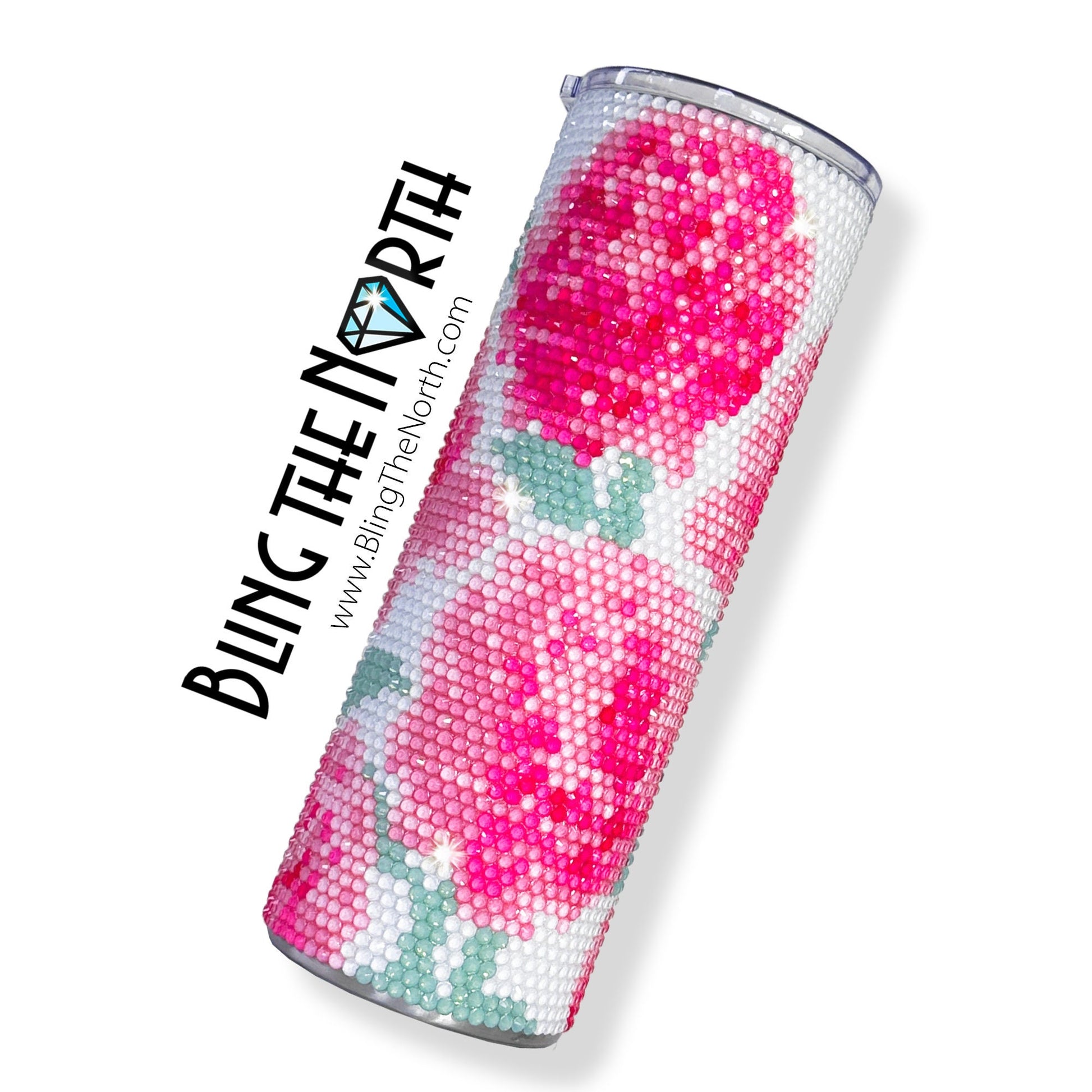 PINK PEONIES Rhinestone Pattern Template | SS16 4mm - 32oz Plump Straight Tumbler Design | PNG for Sublimation or Vinyl
