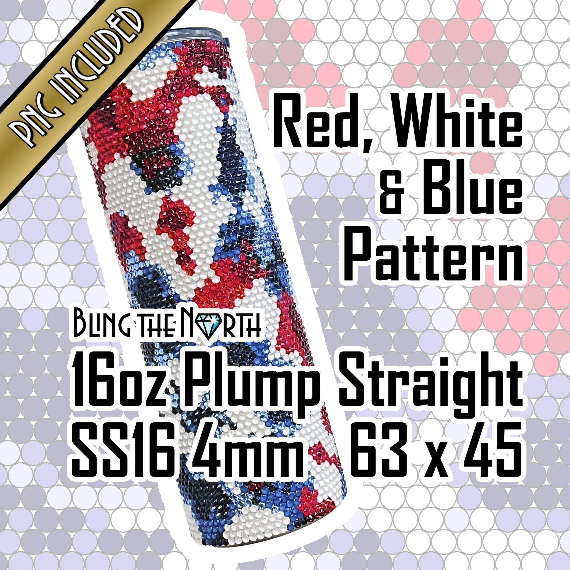 RED, WHITE & BLUE Rhinestone Pattern Template | SS16 4mm - 16oz Plump Straight Tumbler Design | PNG for Sublimation or Vinyl