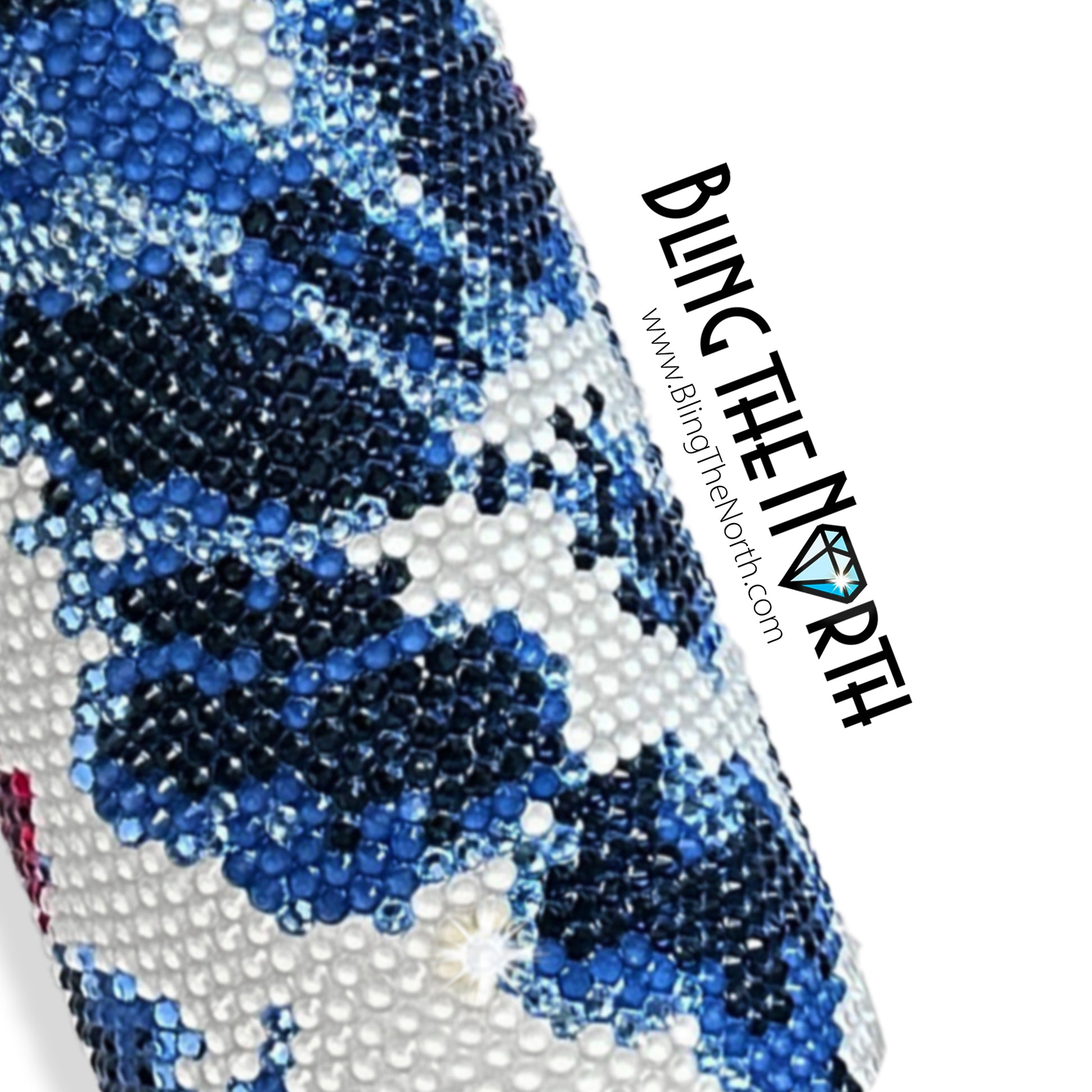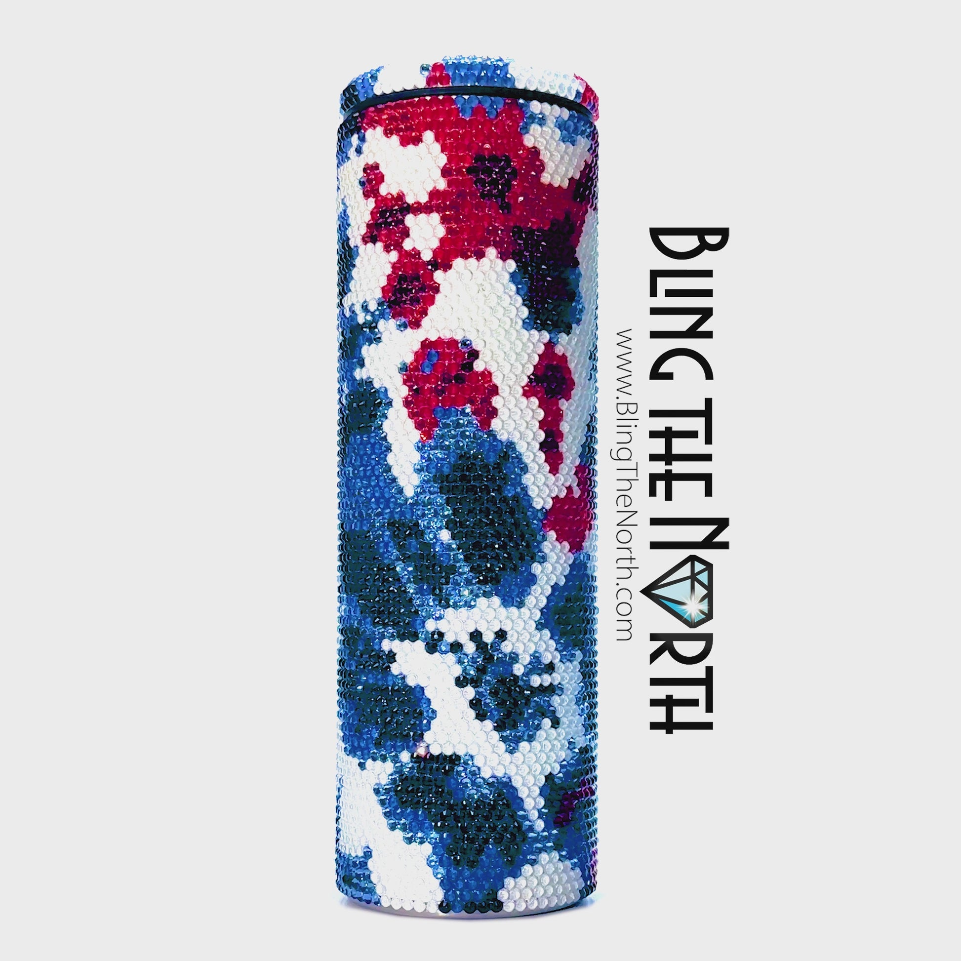 This pattern was designed for use with a 20oz STRAIGHT SKINNY or a 20oz SLURP tumbler from The Stainless Depot using SS16 rhinestones. The tumbler used must fit 61 rhinestones per row for 62 rows. Additional sizes of this design may be available in our store. Pattern is not guaranteed to fit all sizes, styles, or brands of tumblers.