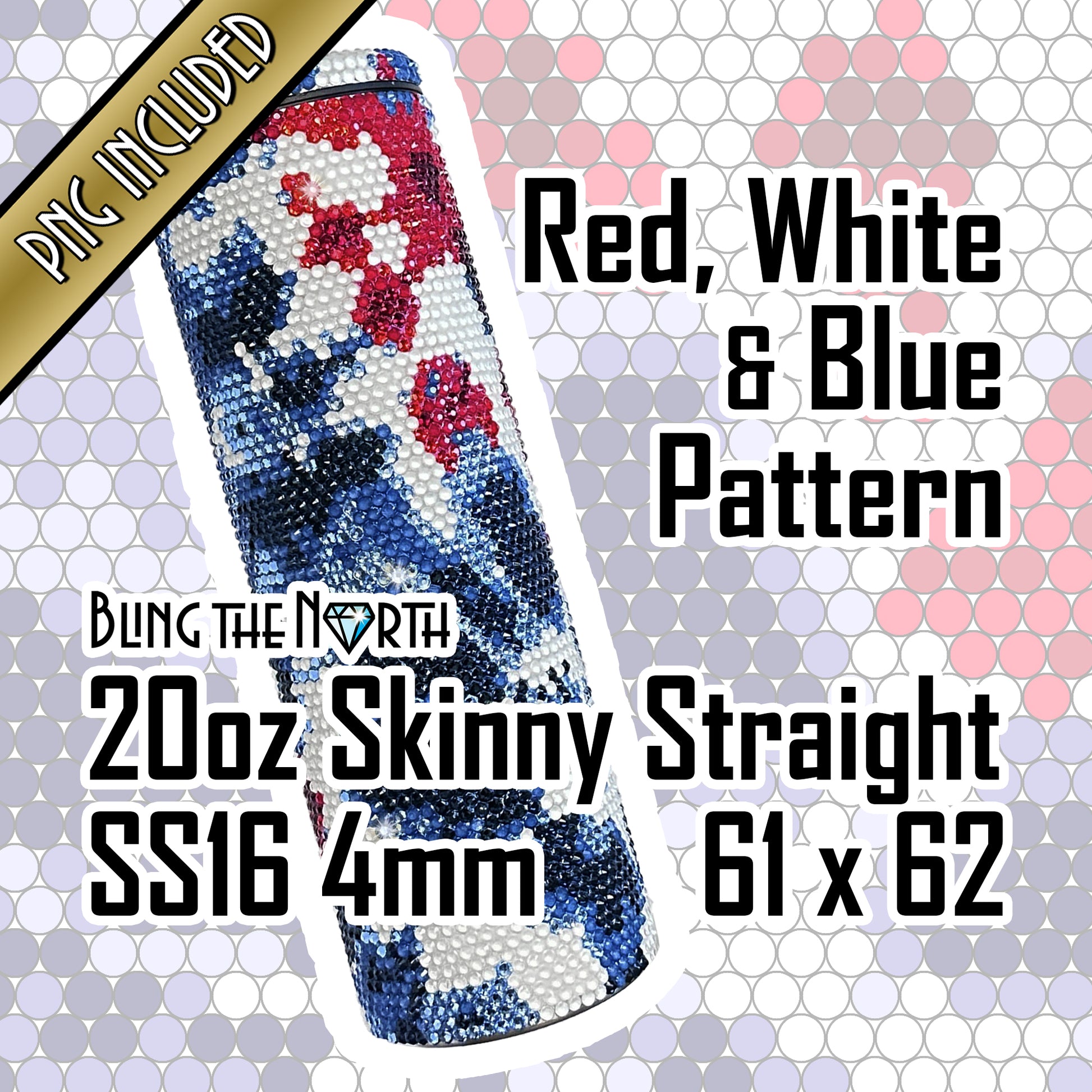 RED, WHITE & BLUE Rhinestone Pattern Template | SS16 4mm - 20oz Plump Straight Tumbler Design | PNG for Sublimation or Vinyl