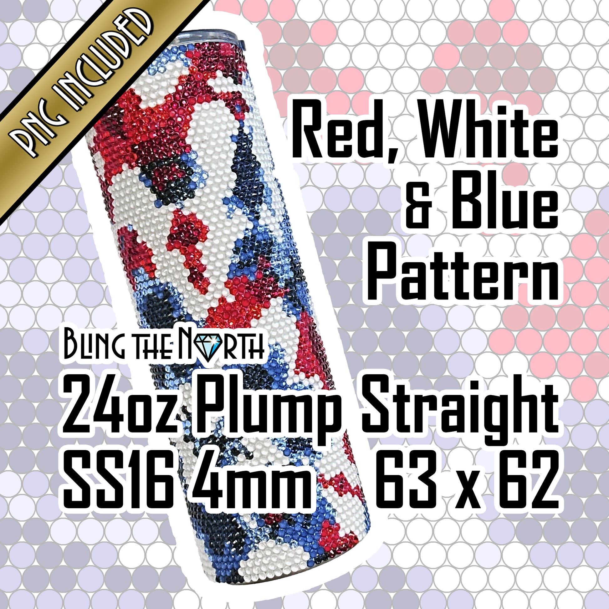 RED, WHITE & BLUE Rhinestone Pattern Template | SS16 4mm - 24oz Plump Straight Tumbler Design | PNG for Sublimation or Vinyl
