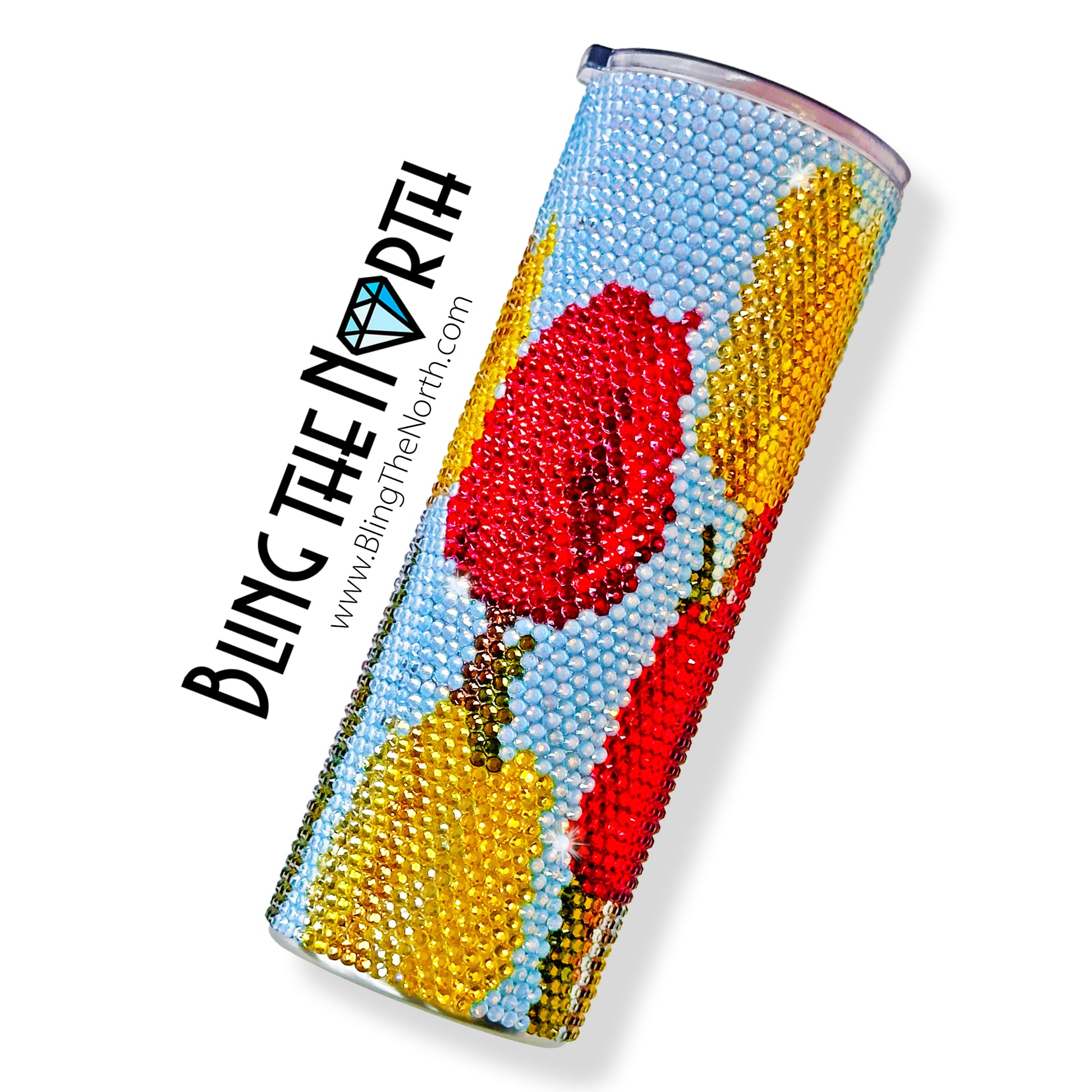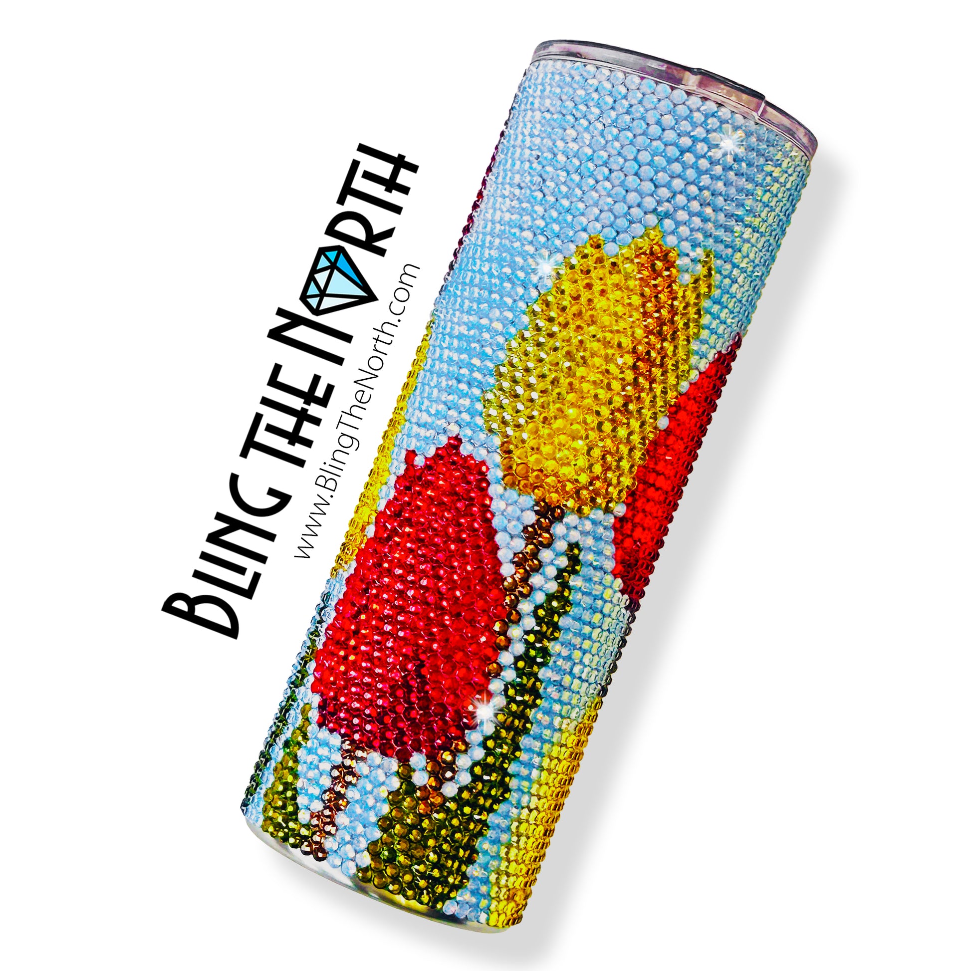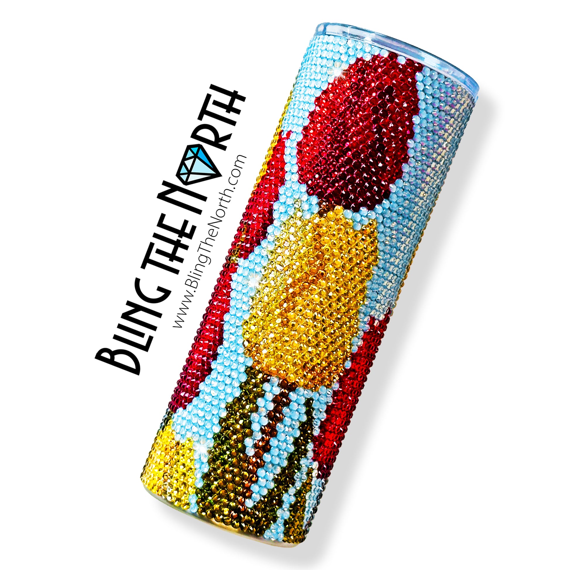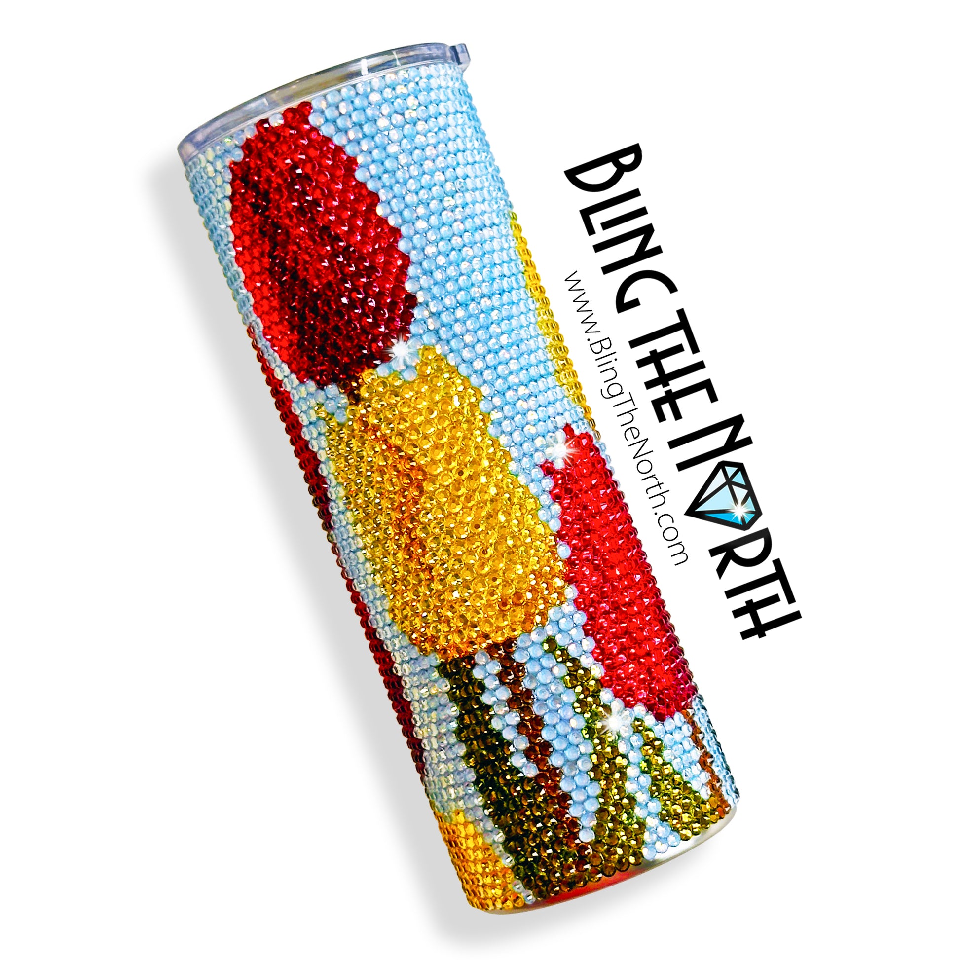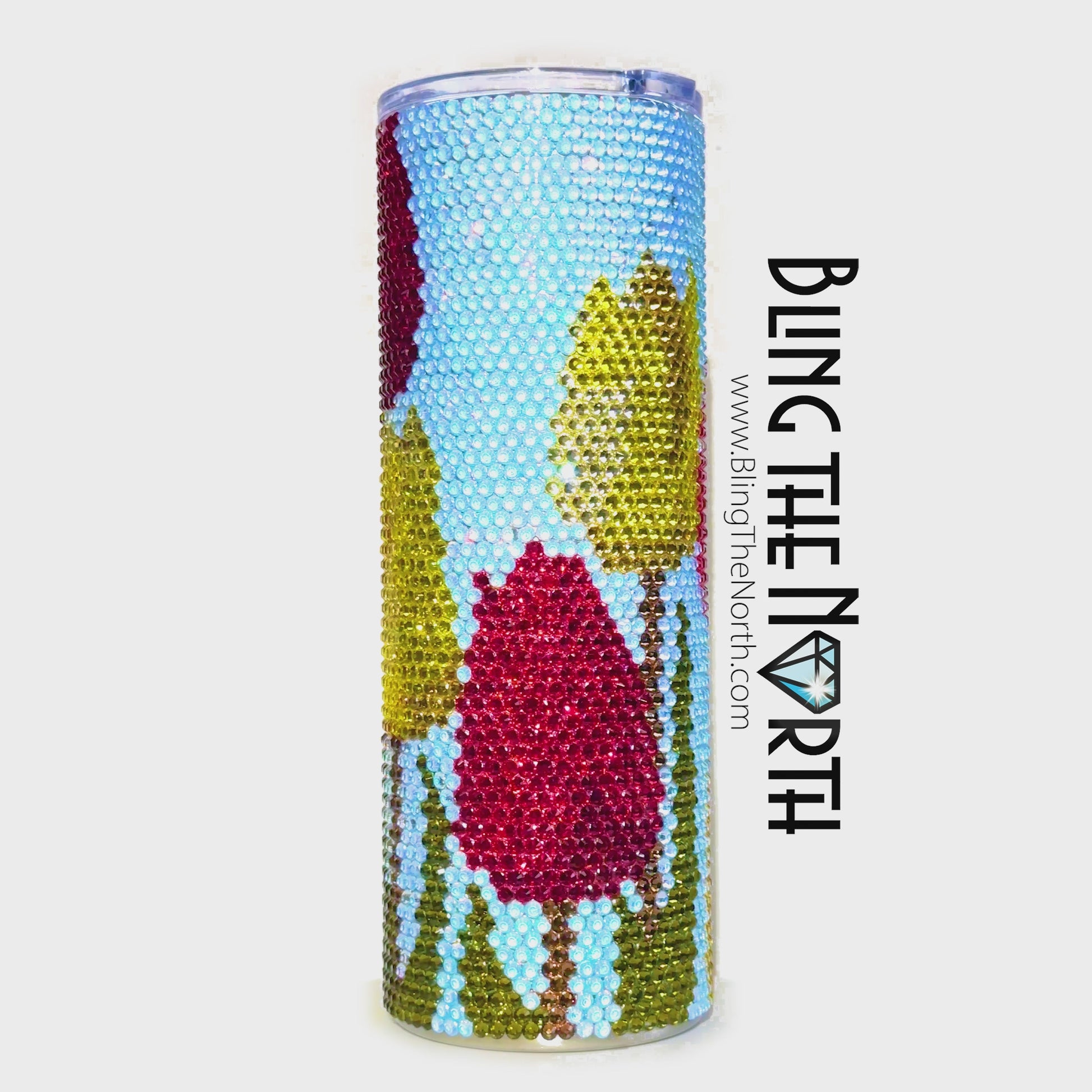 This pattern was designed for use with a 20oz STRAIGHT SKINNY or a 20oz SLURP tumbler from The Stainless Depot using SS16 rhinestones. The tumbler used must fit 61 rhinestones per row for 62 rows. Additional sizes of this design may be available in our store. Pattern is not guaranteed to fit all sizes, styles, or brands of tumblers.