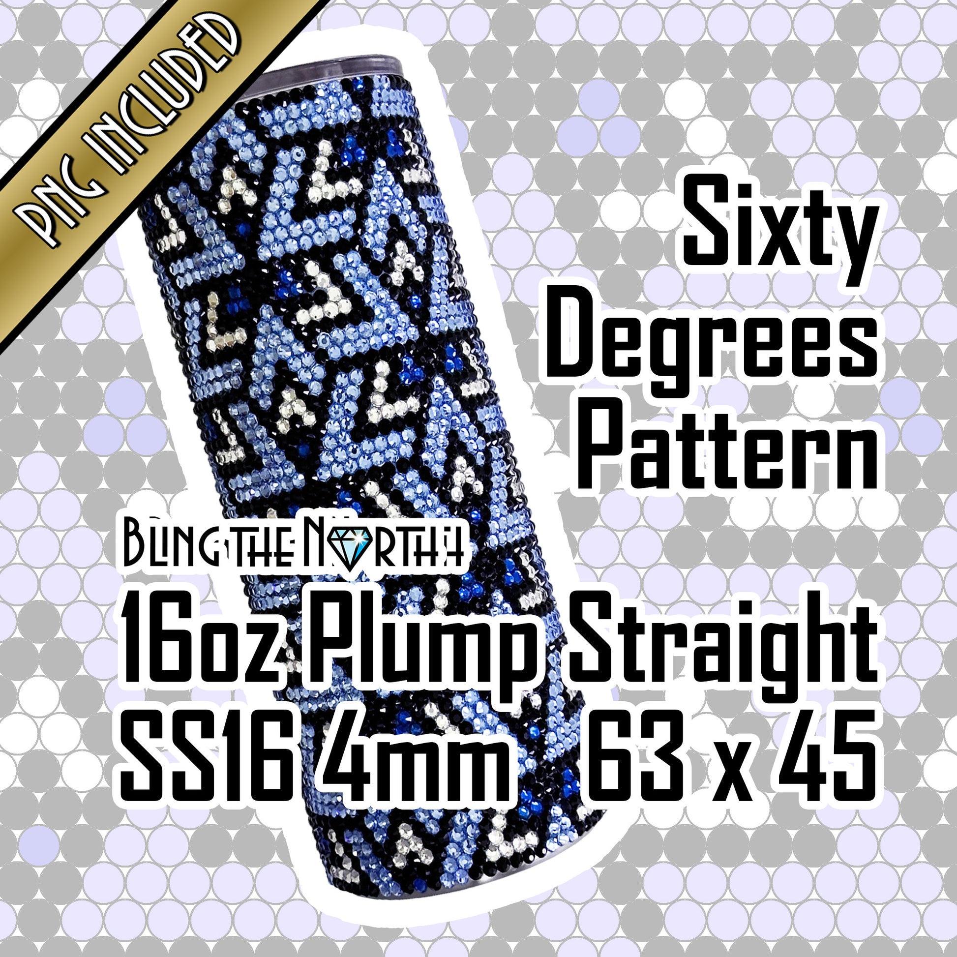 SIXTY DEGREES Rhinestone Pattern Template | SS16 4mm - 16oz Plump Tumbler Design | PNG for Sublimation or Vinyl