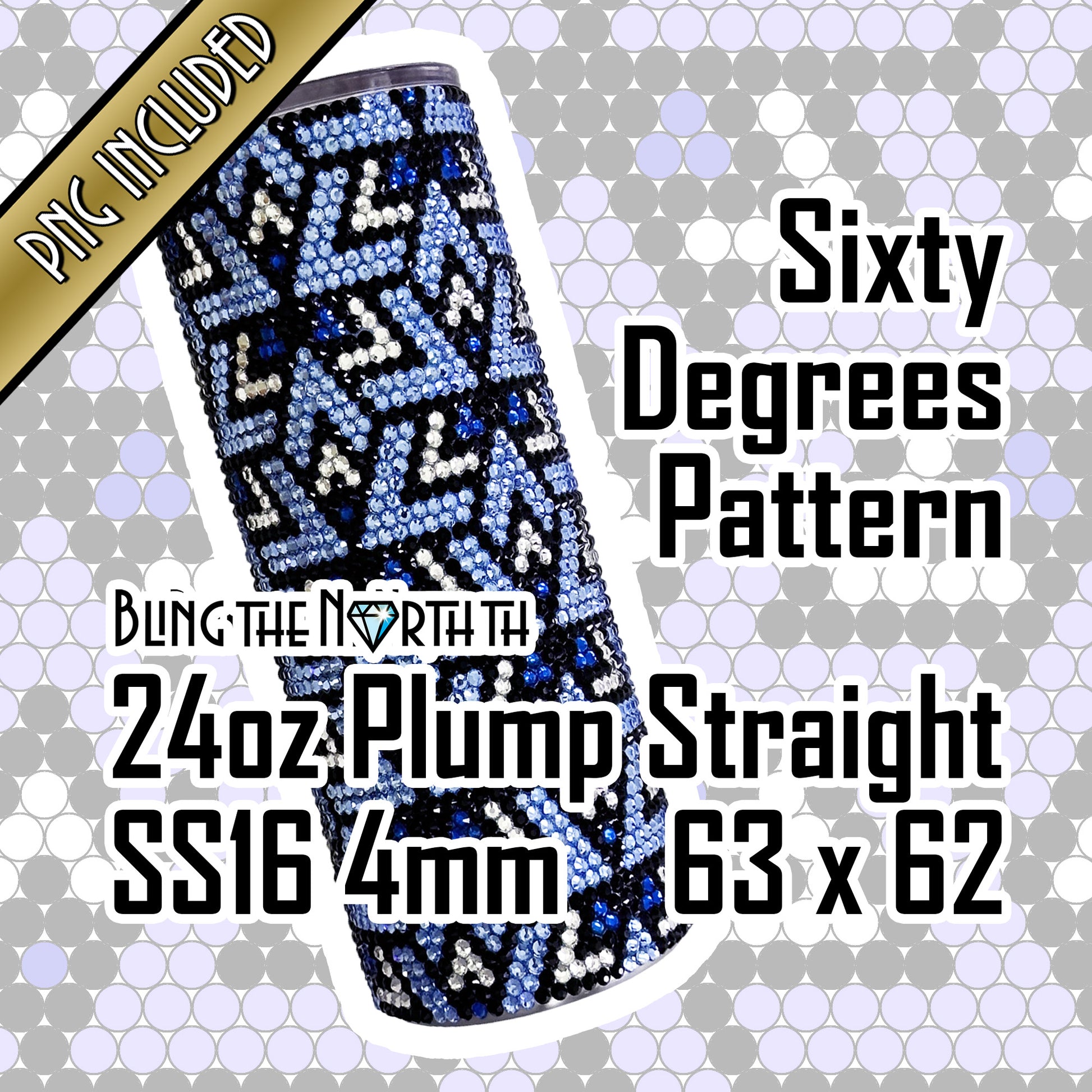 SIXTY DEGREES Rhinestone Pattern Template | SS16 4mm - 24oz Plump Tumbler Design | PNG for Sublimation or Vinyl