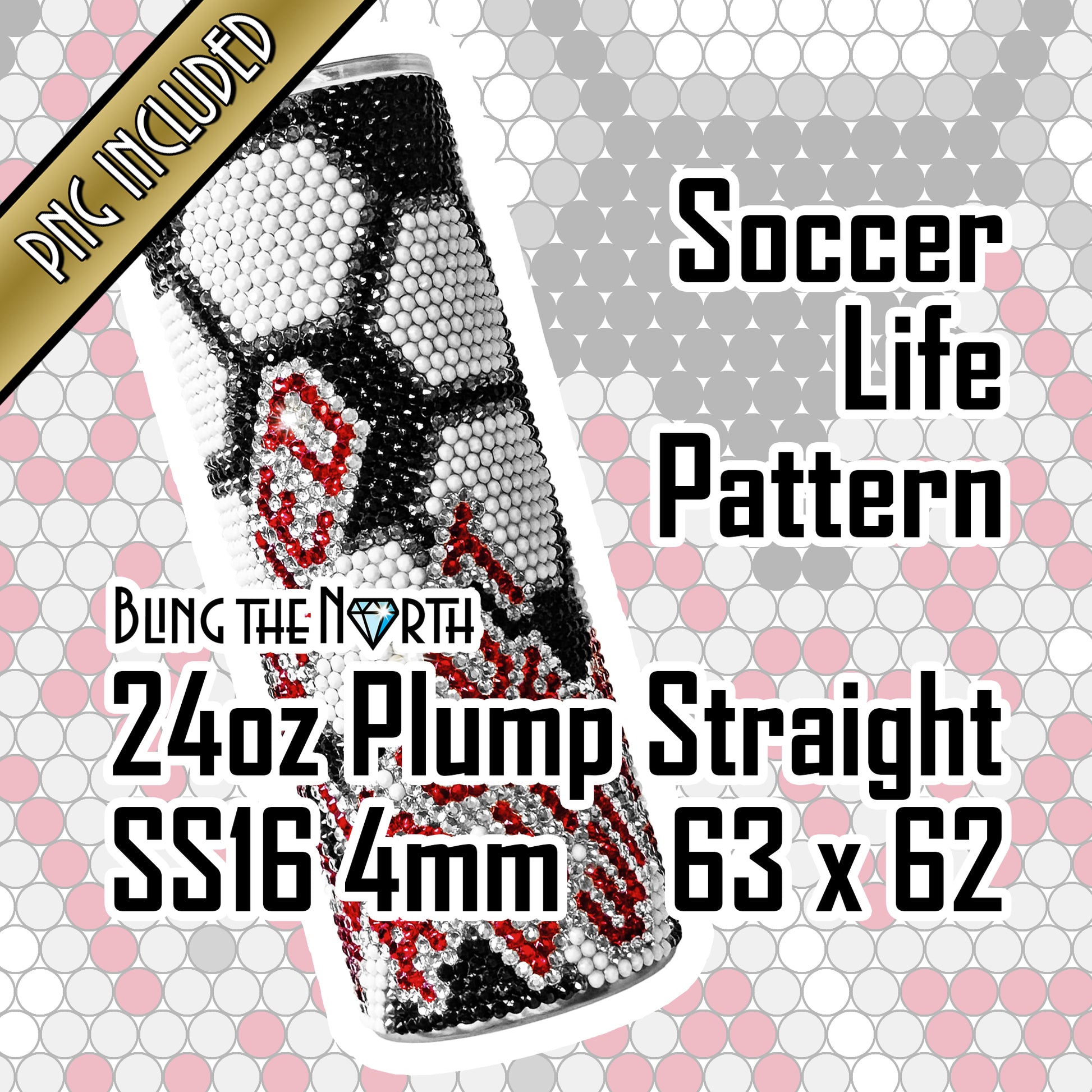 SOCCER LIFE Rhinestone Football Pattern Template | SS16 4mm - 24oz Plump Straight Tumbler Design | PNG for Sublimation or Vinyl