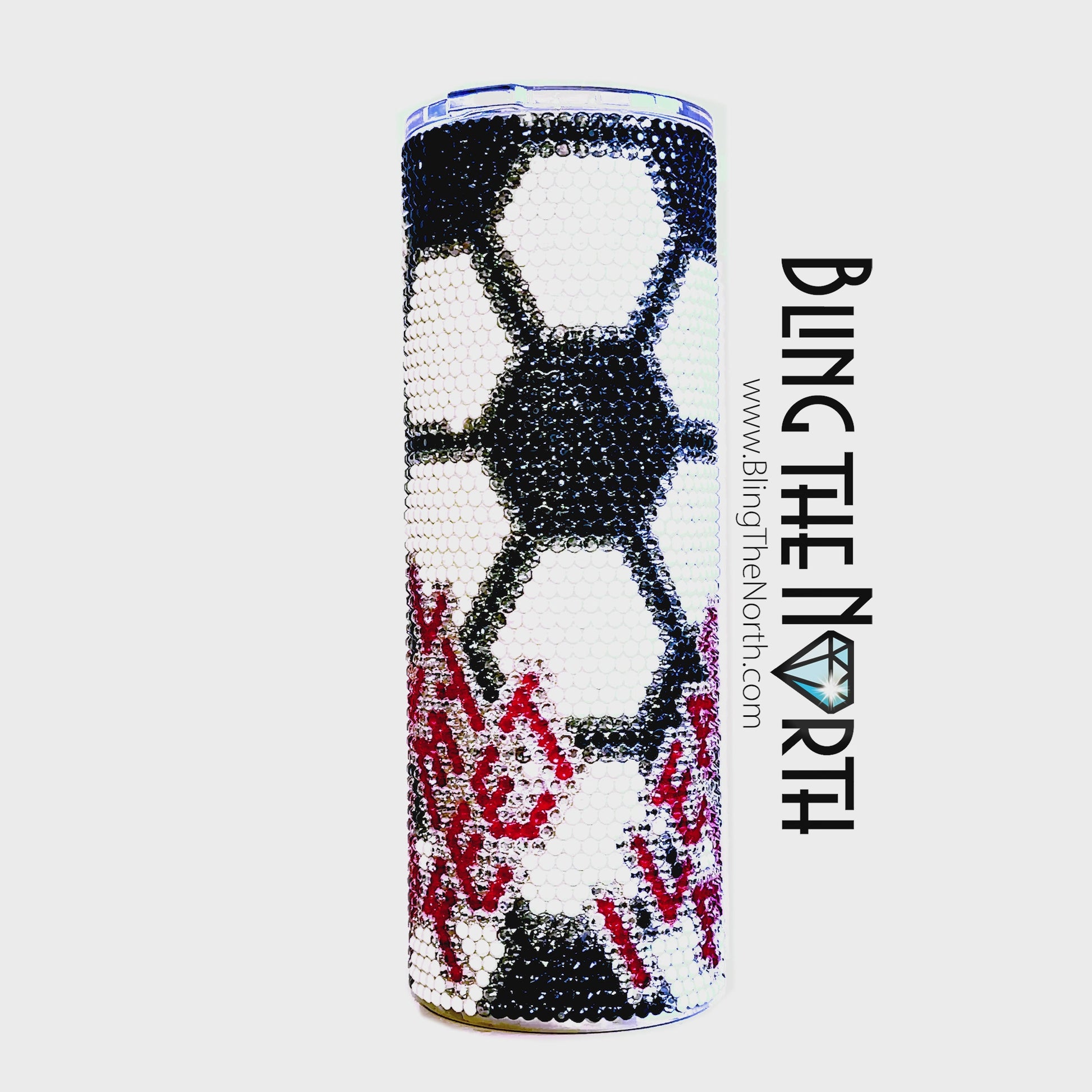 SOCCER LIFE Rhinestone Tumbler | 20oz Skinny Straight | Custom Bling Design | Glass Rhinestones | Straw Incl