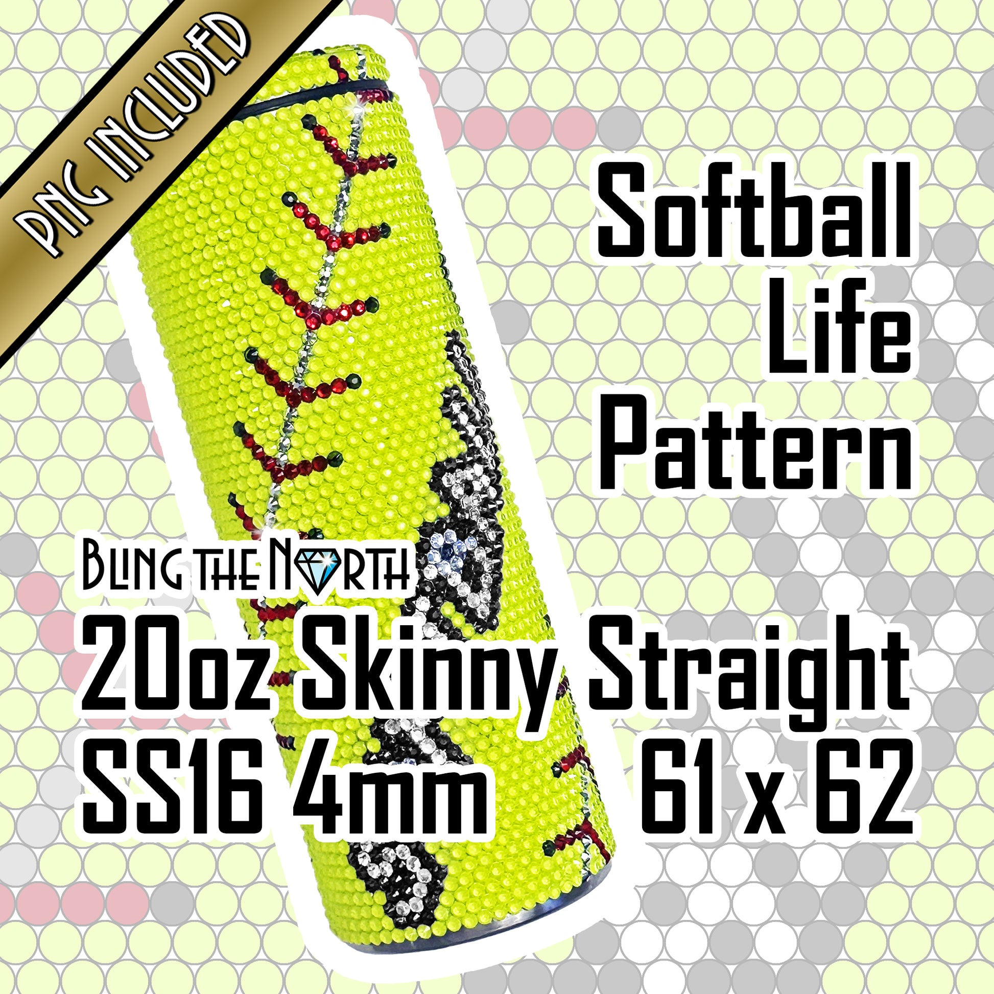SOFTBALL LIFE Custom NAME Rhinestone Pattern Template | SS16 4mm - 20oz Skinny Straight Tumbler Design | PNG for Sublimation or Vinyl