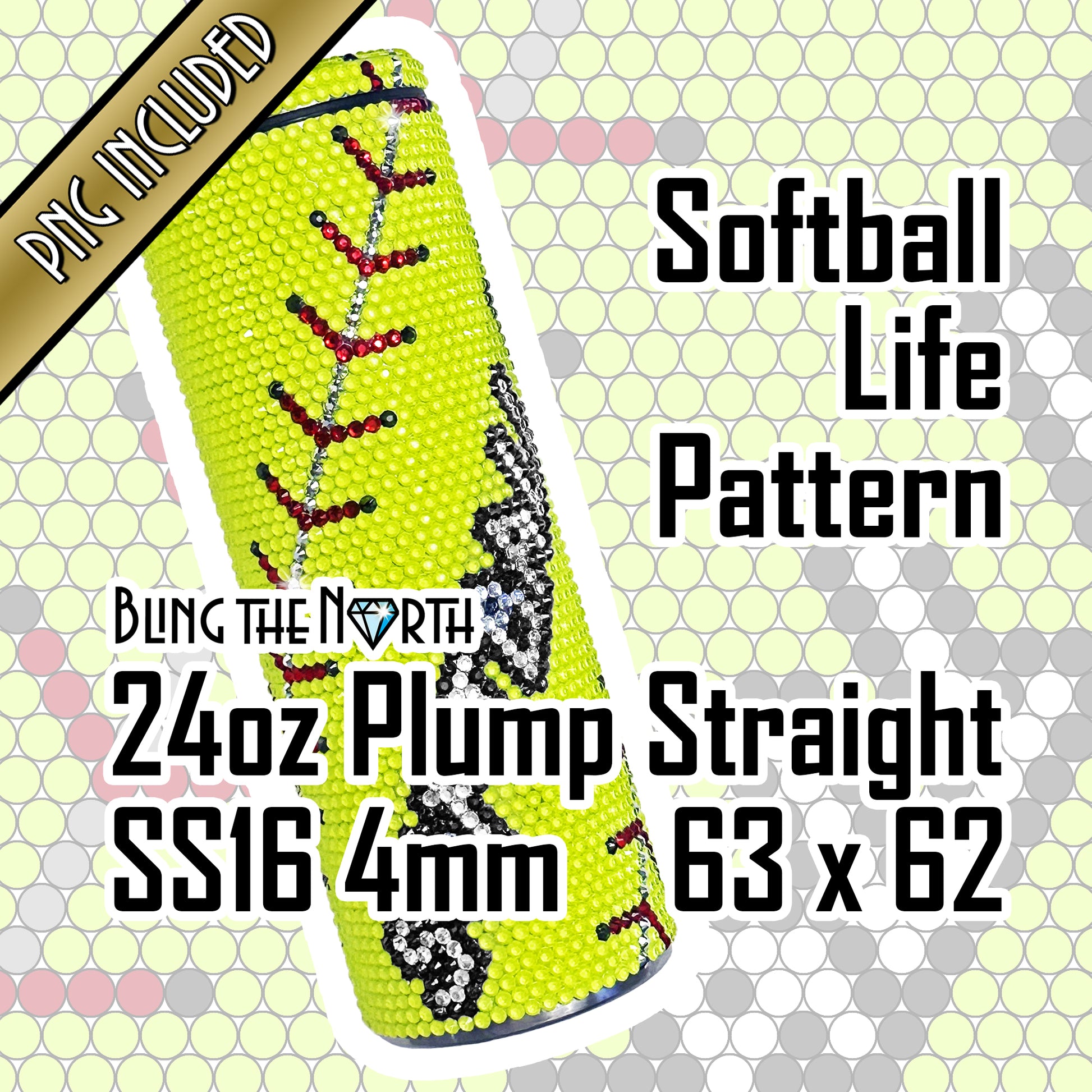 SOFTBALL LIFE Custom NAME Rhinestone Pattern Template | SS16 4mm - 24oz Plump Straight Tumbler Design | PNG for Sublimation or Vinyl