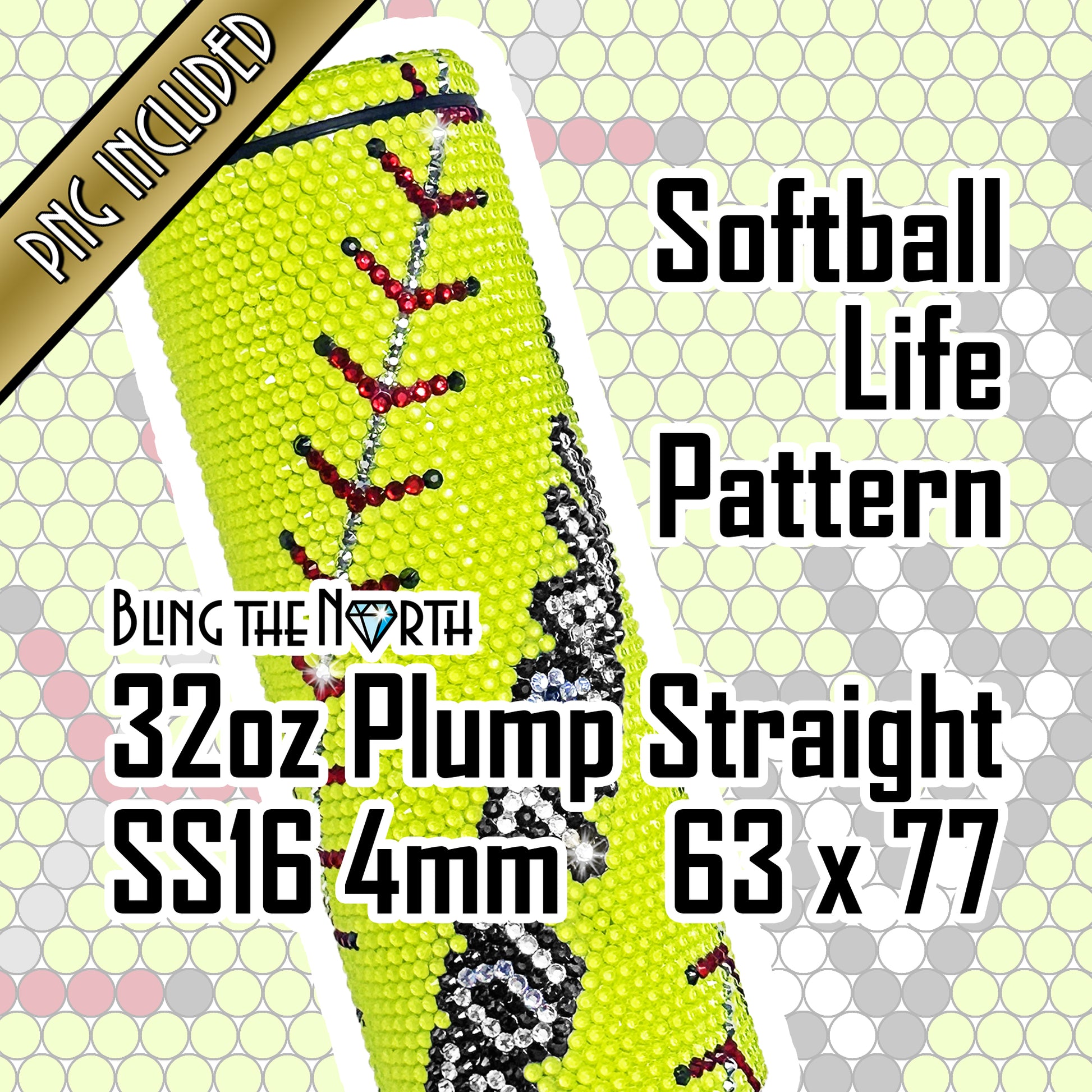 SOFTBALL LIFE Custom NAME Rhinestone Pattern Template | SS16 4mm - 32oz Plump Straight Tumbler Design | PNG for Sublimation or Vinyl