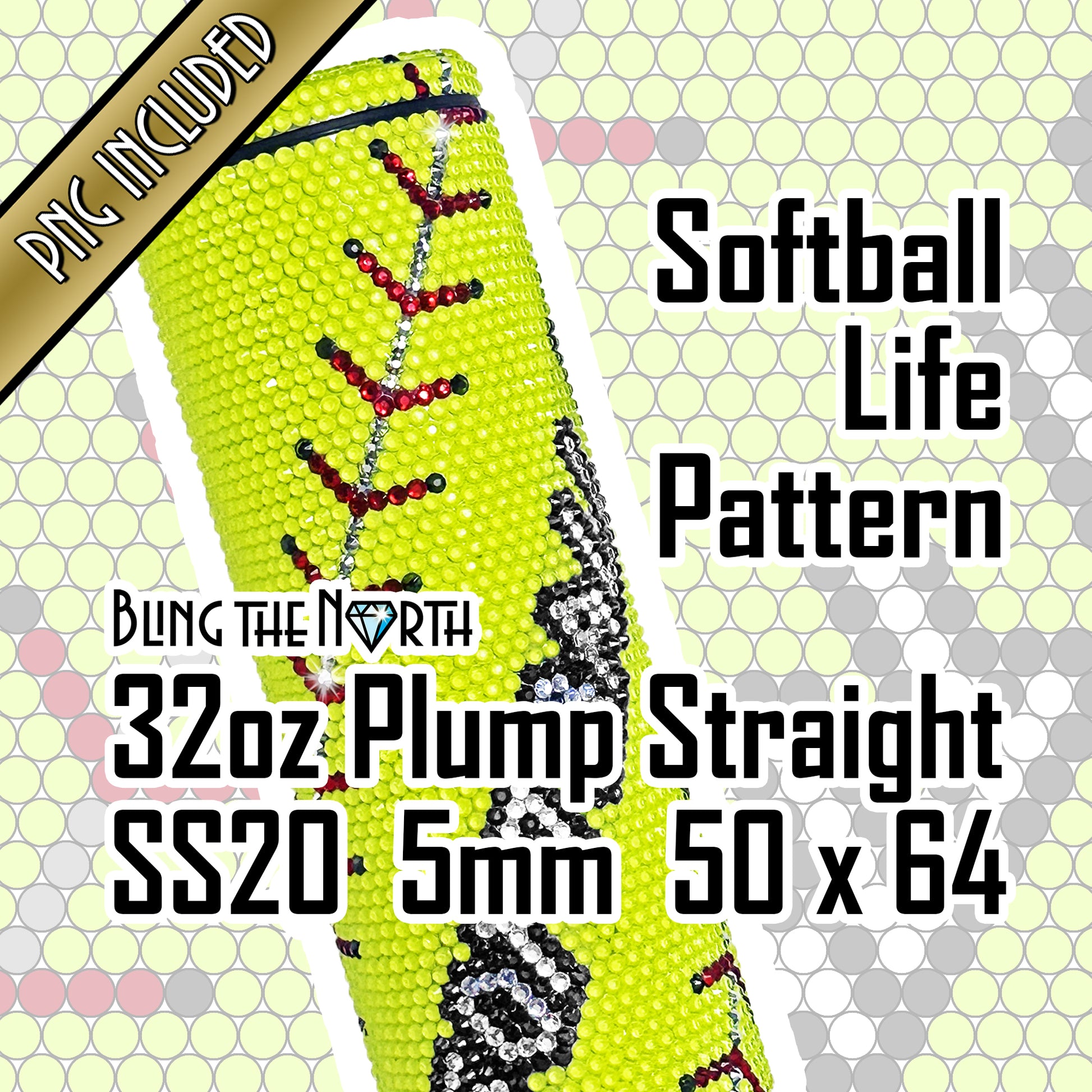 SOFTBALL LIFE Custom NAME Rhinestone Pattern Template | SS20 5mm - 32oz Plump Straight Tumbler Design | PNG for Sublimation or Vinyl