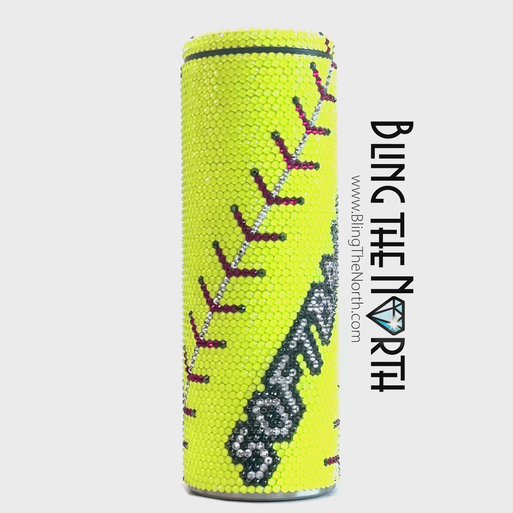 SOFTBALL LIFE Rhinestone Tumbler | 20oz Slurp Straight | Bling the North | Custom Bling Design | Glass Rhinestones | Straw Included