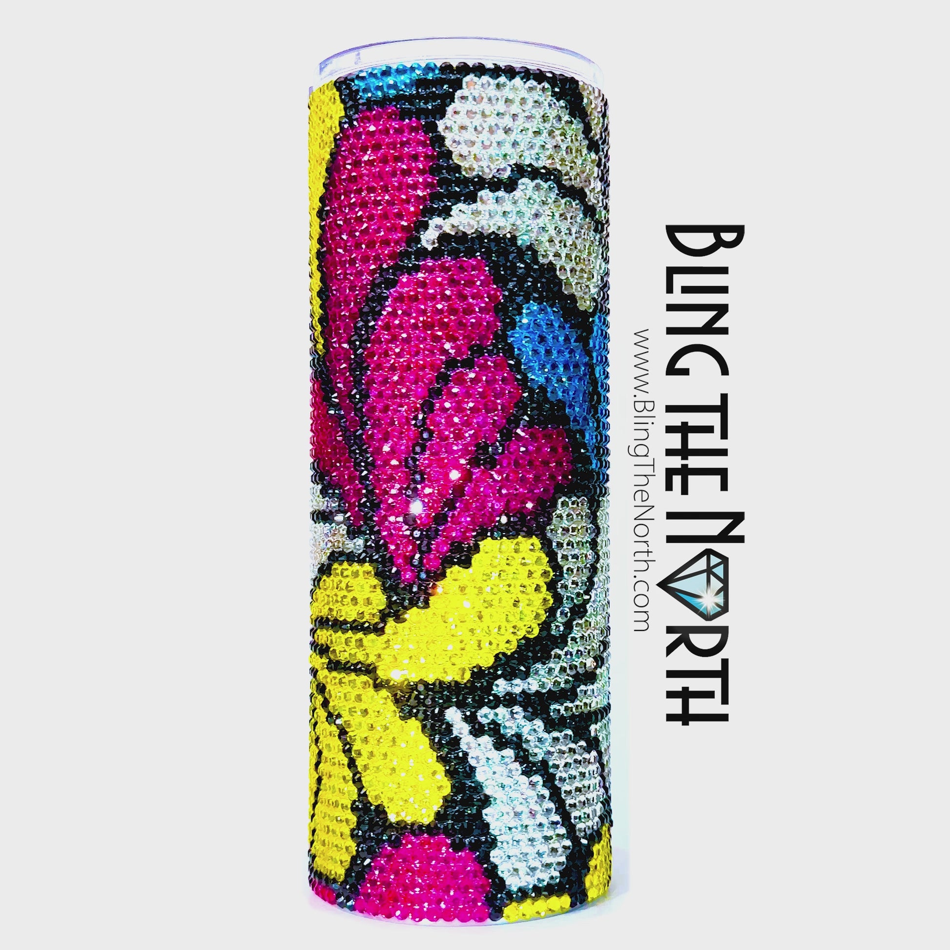 This pattern was designed for use with a 20oz STRAIGHT SKINNY or a 20oz SLURP tumbler from The Stainless Depot using SS16 rhinestones. The tumbler used must fit 61 rhinestones per row for 62 rows. Additional sizes of this design may be available in our store. Pattern is not guaranteed to fit all sizes, styles, or brands of tumblers.