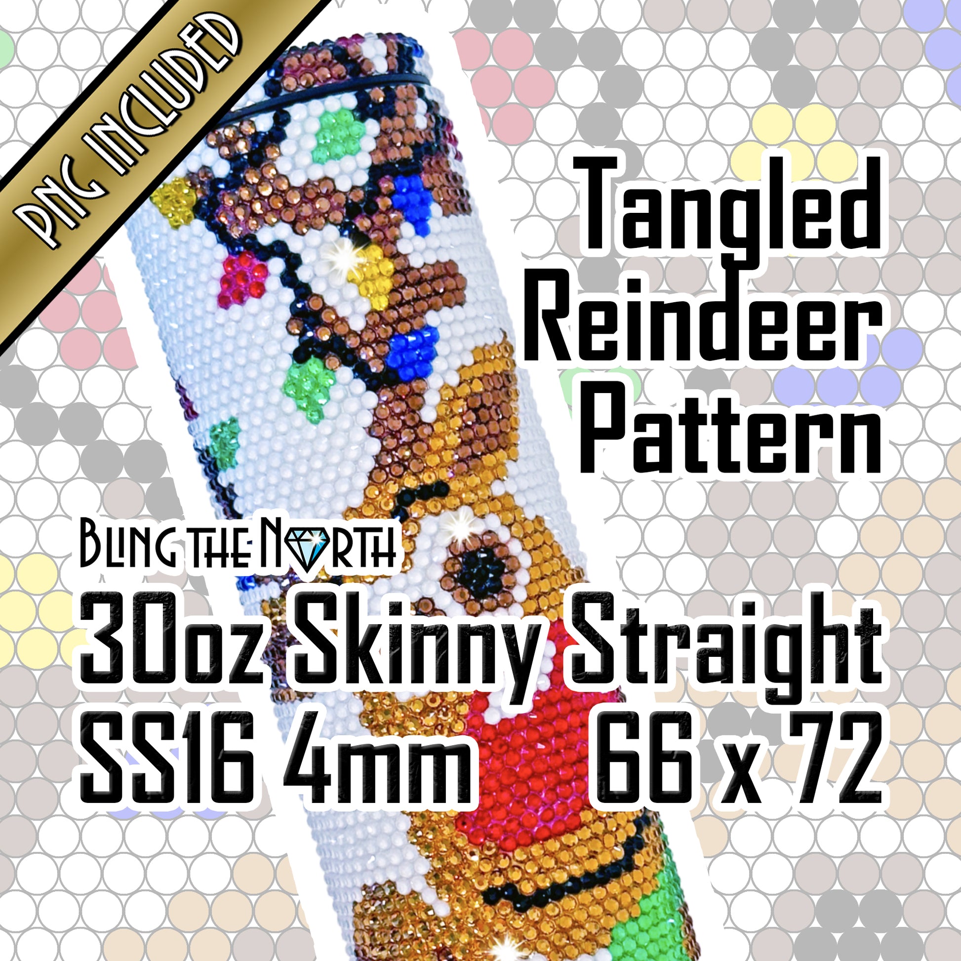 TANGLED REINDEER Christmas Rhinestone Pattern Template | SS16 4mm - 30oz Skinny Straight Tumbler Design | PNG for Sublimation or Vinyl
