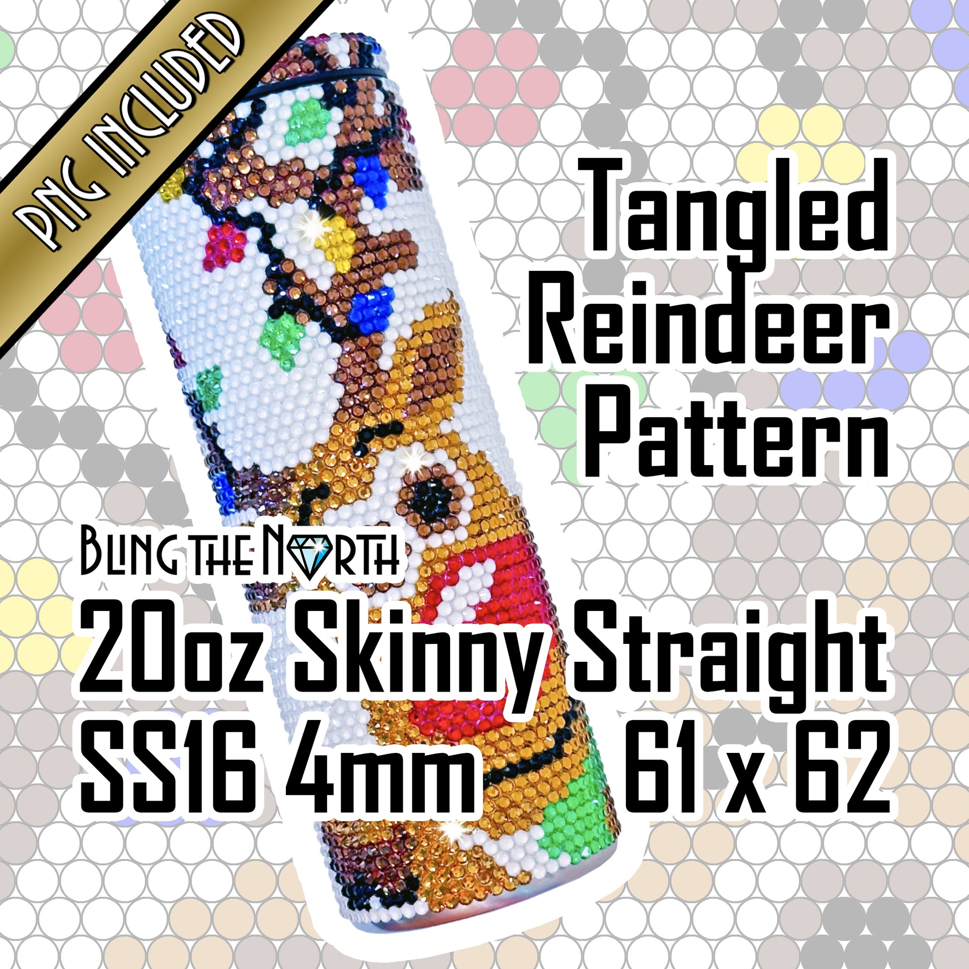 TANGLED REINDEER Rhinestone Pattern Template | SS16 4mm - 20oz Skinny Straight Tumbler Design | PNG for Sublimation or Vinyl