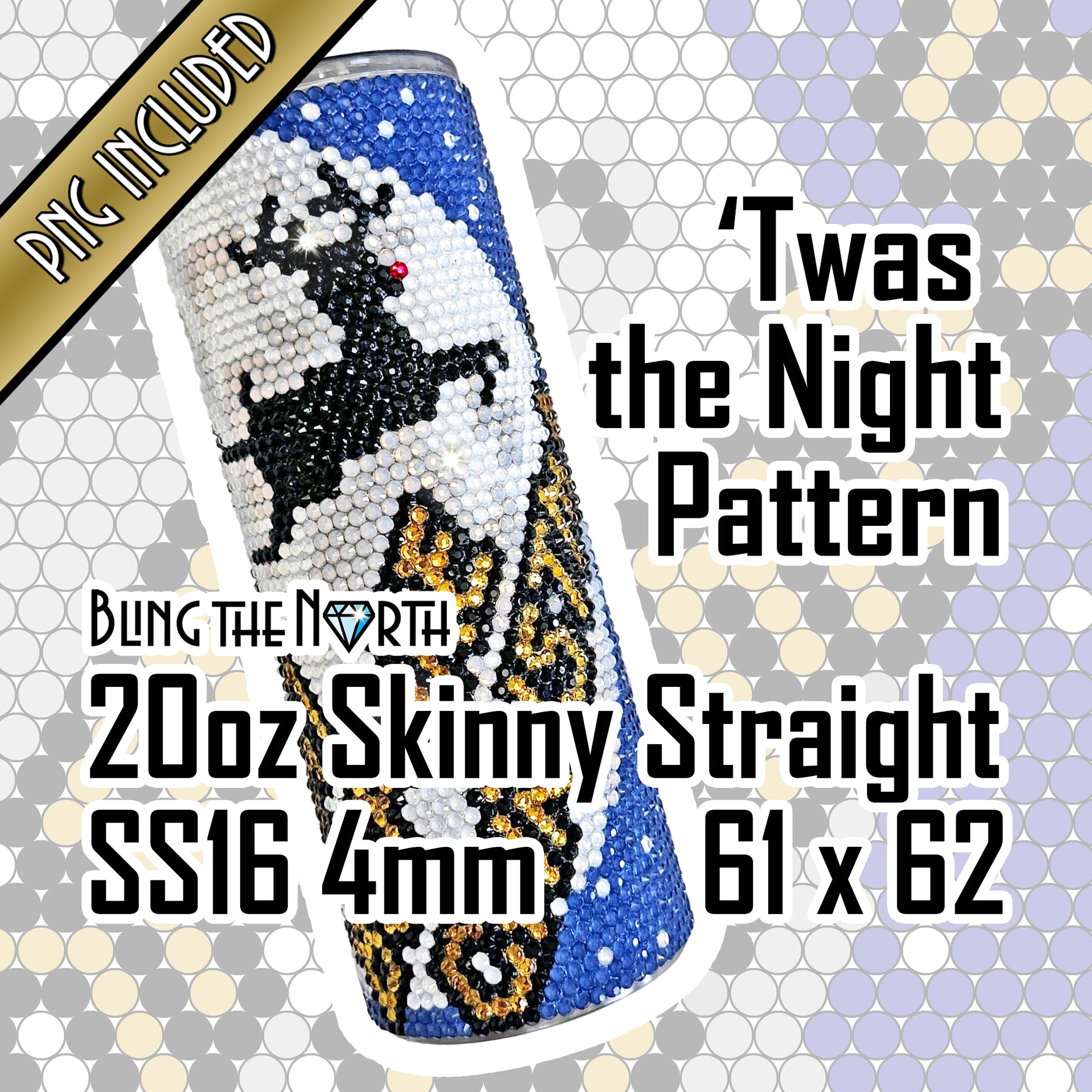 TWAS THE NIGHT Rhinestone Pattern Template | SS16 4mm - 20oz Skinny Straight Tumbler Design | Christmas | PNG for Sublimation or Vinyl