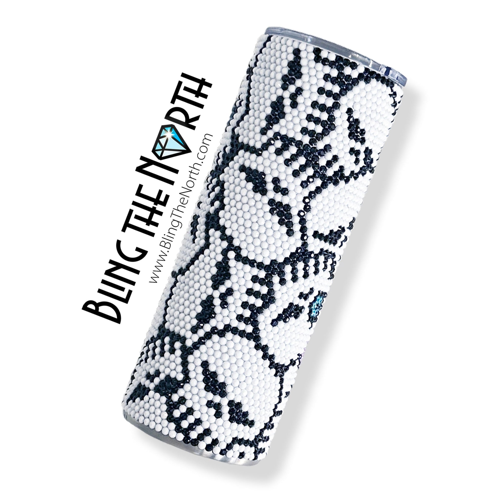 This pattern was designed for use with a 16oz PLUMP TUMBLER or the 12oz SLIM KEWLZIE from The Tipsy Magnolia, with SS16 rhinestones, using 63 rhinestones per row for 45 rows. Additional sizes of this design may be available in our store. Pattern is not guaranteed to fit all sizes, styles, or brands of tumblers.