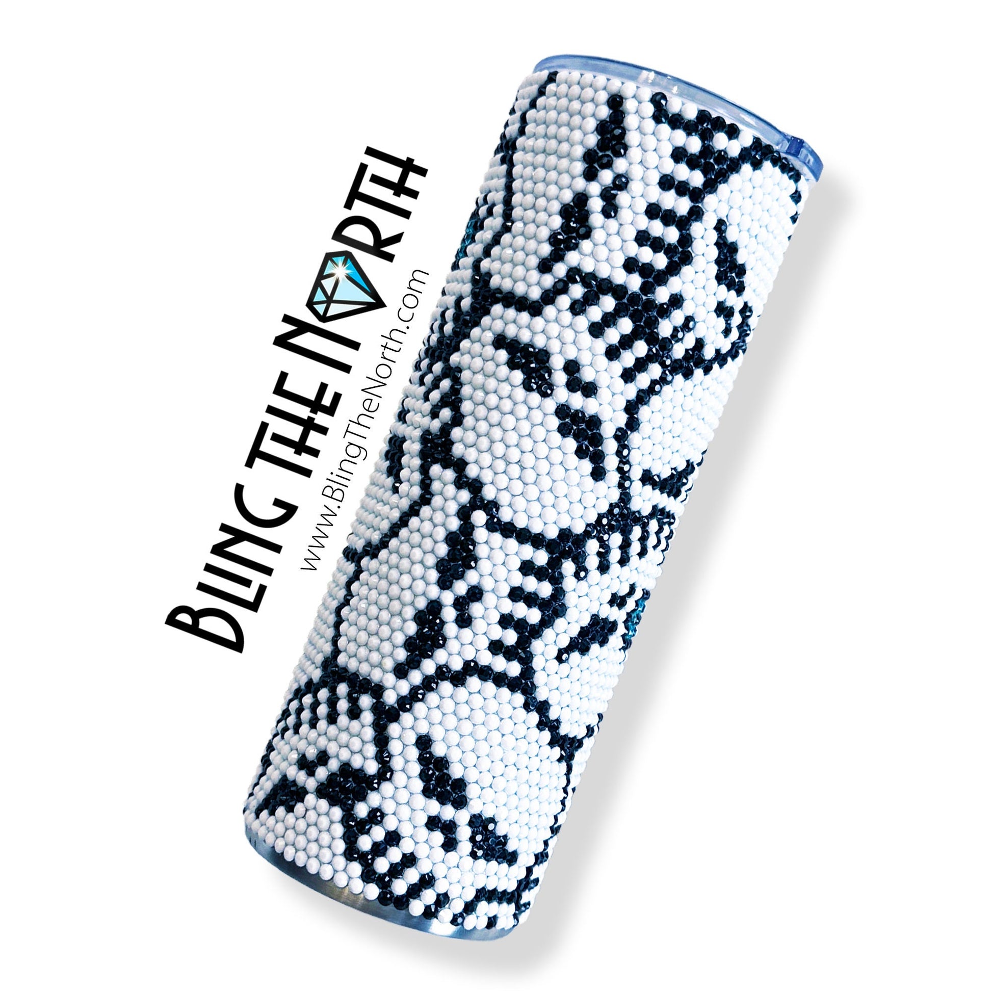 This pattern was designed for use with a 20oz STRAIGHT SKINNY or a 20oz SLURP tumbler from The Stainless Depot using SS16 rhinestones. The tumbler used must fit 61 rhinestones per row for 62 rows. Additional sizes of this design may be available in our store. Pattern is not guaranteed to fit all sizes, styles, or brands of tumblers.