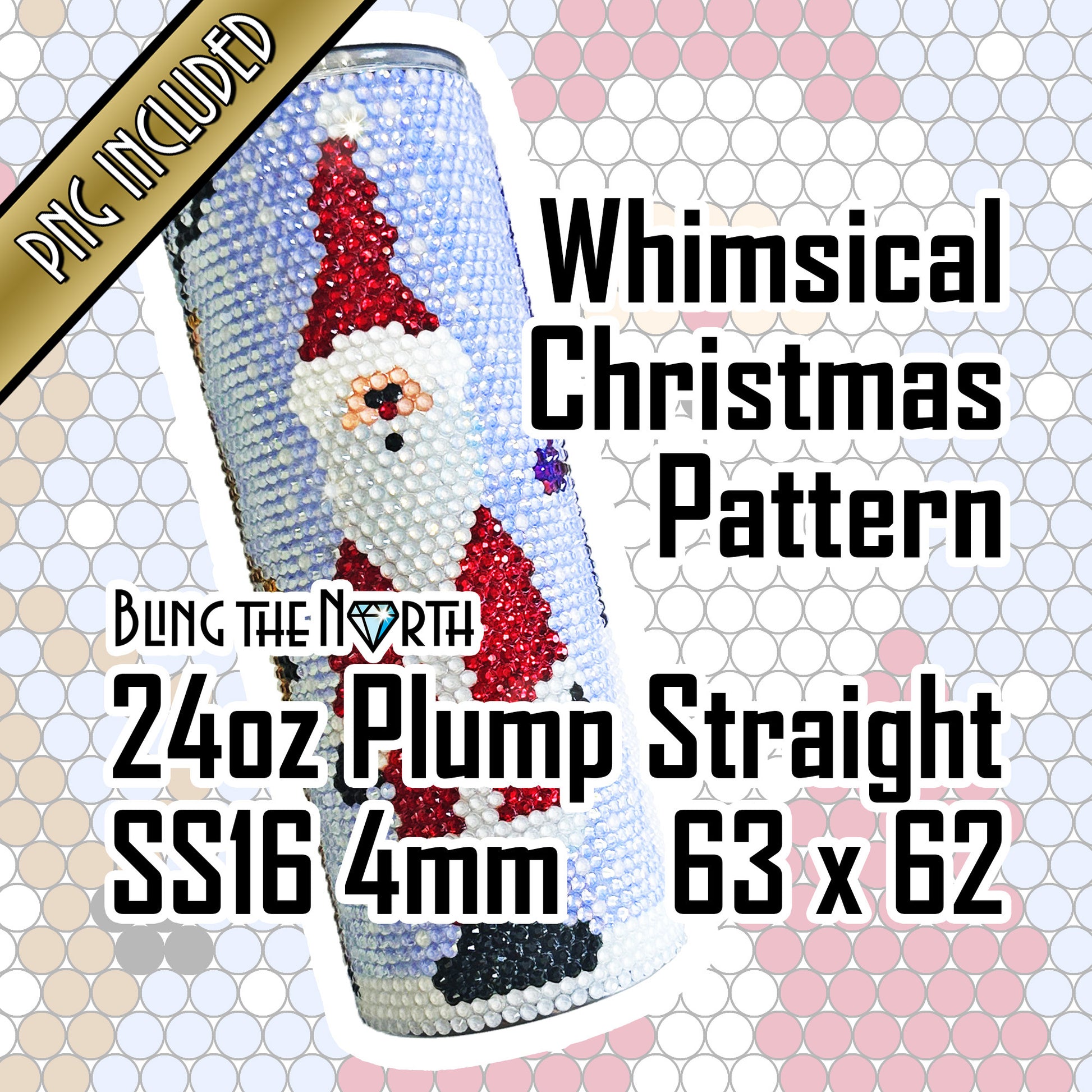 WHIMSICAL CHRISTMAS Rhinestone Pattern Template | SS16 4mm - 24oz Plump Straight Tumbler Design | PNG for Sublimation or Vinyl