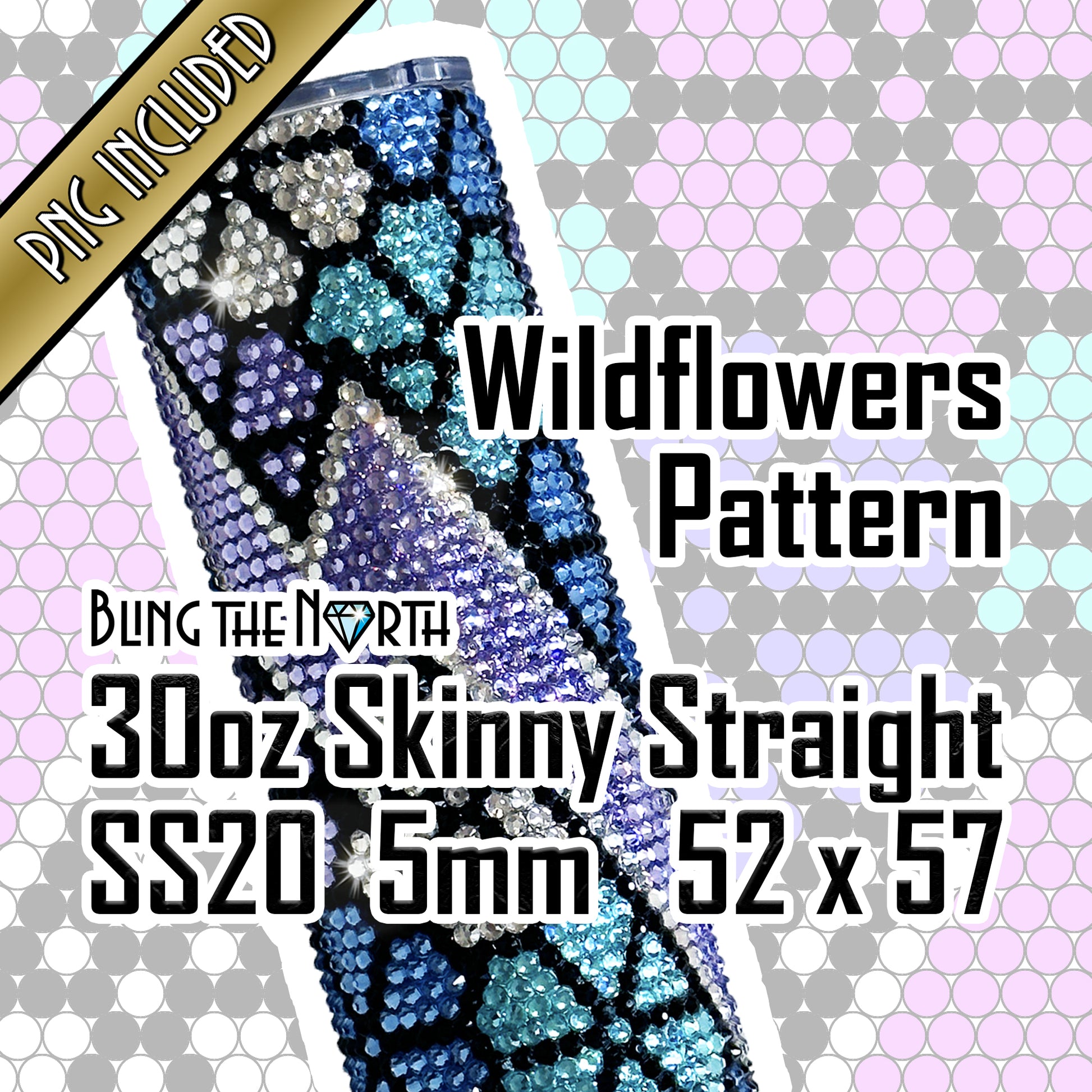 WILDFLOWERS Rhinestone Pattern Template | SS20 5mm - 30oz Skinny Straight Tumbler Design | PNG for Sublimation or Vinyl