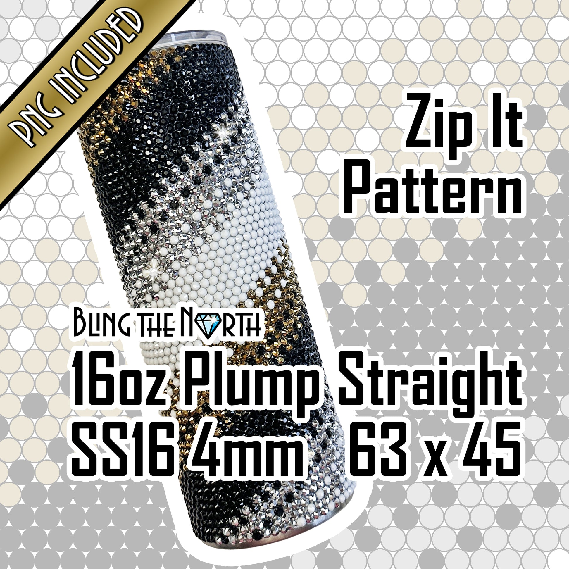 ZIP IT Rhinestone Pattern Template | SS16 4mm - 16oz Plump Straight Tumbler Design | PNG for Sublimation or Vinyl
