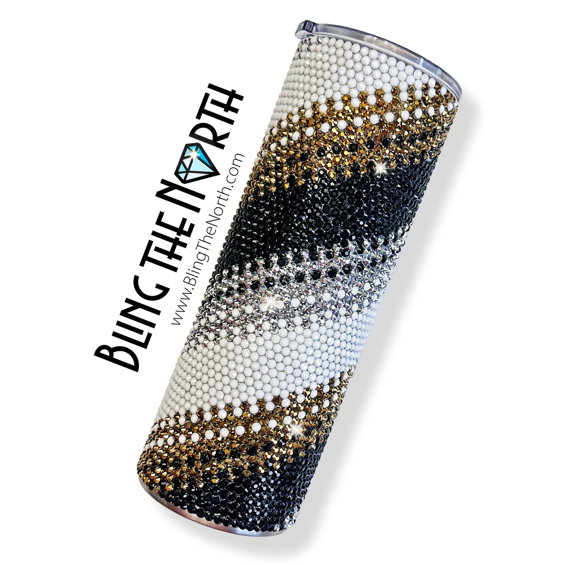 This pattern was designed for use with a 16oz PLUMP TUMBLER or the 12oz SLIM KEWLZIE from The Tipsy Magnolia, with SS16 rhinestones, using 63 rhinestones per row for 45 rows. Additional sizes of this design may be available in our store. Pattern is not guaranteed to fit all sizes, styles, or brands of tumblers.