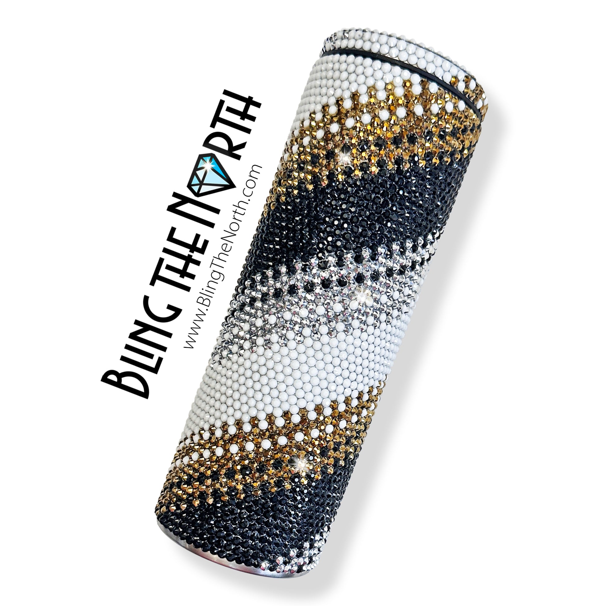 This pattern was designed for use with a 20oz STRAIGHT SKINNY or a 20oz SLURP tumbler from The Stainless Depot using SS16 rhinestones. The tumbler used must fit 61 rhinestones per row for 62 rows. Additional sizes of this design may be available in our store. Pattern is not guaranteed to fit all sizes, styles, or brands of tumblers.
